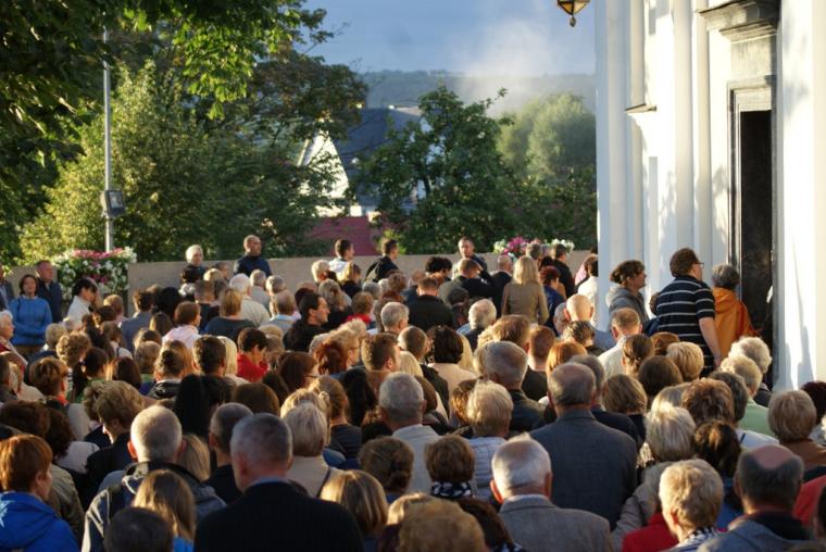 Wieczorna Eucharystia zgromadziła licznych pielgrzymów reprezentujących członków Akcji Katolickiej diecezji tarnowskiej. Głównym celebransem i kaznodzieją eucharystycznej ofiary był ks. dr Jan Bartoszek – asystent diecezjalny Akcji Katolickiej z Tarnowa. Kaznodzieja rozpoczął swoją homilię od pytania: Co robić, aby mądrze żeglować po życiu? Zaznaczył, że potrzebujemy wzorców, które ukażą nam życie szlachetne, piękne i owocne. Takim wzorcem jest tuchowskie sanktuarium jako serce Matki w tytule Stolicy Mądrości. Należy pamiętać, że możemy napełnić innych tylko tym, co sami posiadamy – tak jak w dzisiejszej Ewangelii Maryja, będąc napełniona Duchem Świętym, niesie Go potrzebującej Elżbiecie. Kaznodzieja podkreślił, że wiedza nie zawsze pokrywa się z mądrością – można być uczonym bądź laureatem nagrody Nobla, ale nie mieć mądrości. Mądrość jest darem, jest charyzmatem. Mądrość jest uczestnictwem w mądrości Jezusa – to nowe patrzenie na świat i drugiego człowieka. Mądrość połączona jest nie tyle z rozumem, co z miłością. Natomiast przeciwieństwem mądrości nie jest brak inteligencji, ale głupota – czyli ograniczenie patrzenia na świat jedynie do wymiarów czysto przyziemnych. Jest groźną chorobą duszy, nieakceptującą ani cierpienia, ani krzyża, ani śmierci. Kaznodzieja, popierając swoje słowa przykładem, zaznaczył, że mądrość przekłada się na konkretne postawy życiowe. Ten, kto współpracuje z mądrością, staje się święty. Mądrość wszystko przenika dzięki swojej czystości, jest wolna od kłamstwa, nienawiści i zawiłości. Nie ma postępu bez mądrości. Na koniec homilii ks. Jan skierował w sposób szczególny słowa do obecnych na placu sanktuaryjnym członków Akcji Katolickiej, aby nieustannie szukali w swoim życiu mądrości, czytając między innymi Pismo Święte. Podkreślił, że wszystkie dary czekają na naszą odpowiedź i stają się dla nas szczególnym zadaniem. Weźmy zatem Ducha Świętego i prośmy Maryję tak jak potrafimy, żeby nam pomogła ufać, że w tym, co nas spotyka, jest Boża mądrość i sens tak często przez nas niezrozumiały. Stolico Mądrości – módl się za nami!