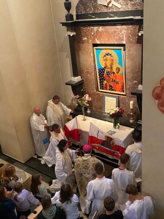 Na zakończenie Mszy Świętej w kaplicy, w której znajduje się obraz Matki Bożej Częstochowskiej, odśpiewano Apel Jasnogórski, a bp Robert zawierzył całą Polonię szwajcarską Jej opiece.