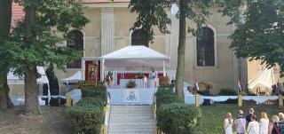 W godzinach popołudniowych odbył się przejazd i zaprzęgów konnych w ramach X Pielgrzymki Konnej, która wraz V Pielgrzymką Motocyklową uczestniczyła Eucharystii odprawionej przez ks. Mirosława Ziembińskiego. Paradą motocyklową uczestnicy pielgrzymki podziękowali za tak piękne kolejne już spotkanie. Główne uroczystości odpustowe zakończyły się nabożeństwem różańcowym i Apelem Jasnogórskim.
