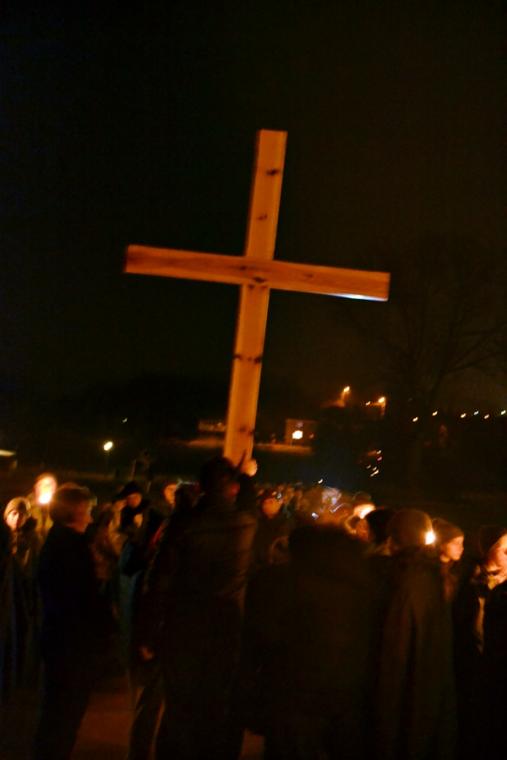 Oświetlona lampkami trasa drogi krzyżowej sprzyjała refleksji, modlitewnej zadumie, czuwaniu i podążaniu za krzyżem Jezusa.