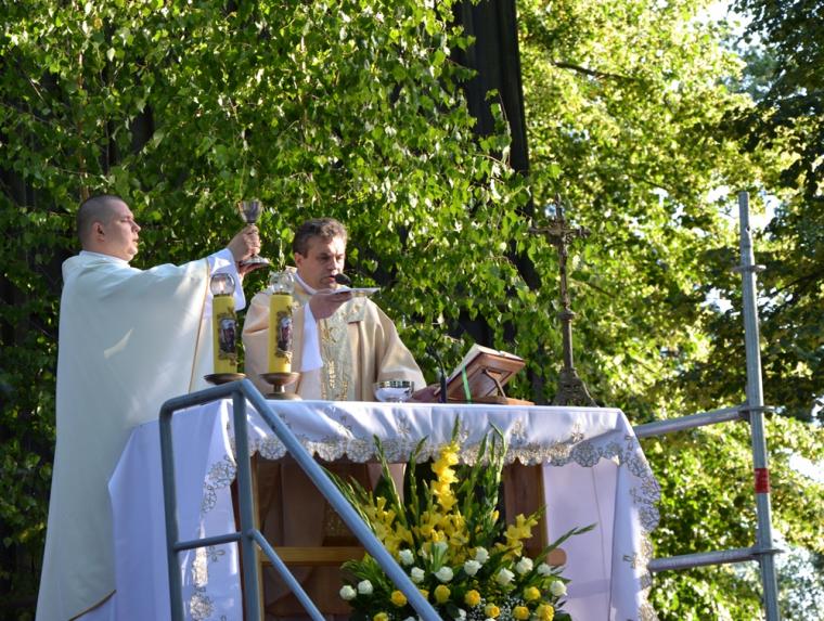 Homilię w czasie tej Eucharystii sprawowanej m.in. w intencji wszystkich obsługujących procesje i przygotowujących ołtarze wygłosił ks. kan. Krzysztof Ordziniak. Na początku kaznodzieja zauważył, że bardzo licznie zgromadzili się w tym dniu wierni w sanktuarium i wokół niego. Zaznaczył, że Chrystus, który jest bogaty w miłosierdzie pochyla się nad każdym człowiekiem, nad każdą ludzką nędzą ukazując mu swe serce pełne miłości. Ksiądz kan. Krzysztof podkreślił, że Bóg nieustannie zaprasza nas byśmy korzystali z Jego miłosierdzia, wskazując, że jest ono jedynym ratunkiem dla człowieka i świata. Zaznaczył, że współczesny człowiek bardzo potrzebuje Bożego przebaczenia, Bożej miłości i obecności. Doświadczenie Bożego miłosierdzia powinno mobilizować nas do miłości do Boga i bliźnich. Celebrans zwrócił uwagę, że Chrystus nieustannie mnoży dla nas swój Chleb. Gdy przyjmujemy Go w Komunii Świętej obdarza nas potrzebnymi siłami, doświadczamy Jego obecności, która jest źródłem otuchy, siły, odwagi.