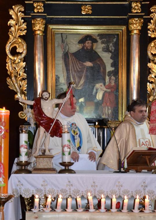 W Niedzielę Miłosierdzia Bożego w parafii zostały odprawione dwie Msze Święte z prośbą o łaski potrzebne dla jego czcicieli. Pierwsza sprawowana była przez ks. kan. Krzysztofa Ordziniaka o godz. 11:00 w kościele farnym. Jest tradycją w naszej parafii, że uczestniczą w niej dzieci. Podczas homilii ks. kanonik nawiązał do słów Ewangelii i zachęcał, zarówno dzieci jak i dorosłych, do troski o rozwój swojej wiary. Nie mogło zabraknąć nawiązania do obchodzonej Niedzieli Miłosierdzia Bożego. Dzieci otrzymały obrazki z Jezusem Miłosiernym na odwrocie których, znajdowały się słowa modlitwy Koronki do Miłosierdzia Bożego. Ich tekst przydał się najmłodszym parafianom, gdyż po zakończonej Eucharystii przy wystawionym Najświętszym Sakramencie odmówiona została właśnie Koronka i Litania do Miłosierdzia Bożego. Trudno wyobrazić sobie ten dzień bez modlitwy w Godzinie Miłosierdzia Bożego. Tę szczególną godzinę część parafian przeżywała w Diecezjalnym Sanktuarium Świętego Rocha. Tu ks. kan. Krzysztof poprowadził Koronkę do Miłosierdzia Bożego. Zanim rozpoczęliśmy modlitwę kapłan przywołał fragmenty z Dzienniczka s. Faustyny. Były wśród nich następujące słowa Jezusa: „Pragnę, aby święto Miłosierdzia, było ucieczką i schronieniem dla wszystkich dusz, a szczególnie dla biednych grzeszników. W dniu tym otwarte są wnętrzności miłosierdzia Mego, wylewam całe morze łask na dusze, które się zbliżą do źródła miłosierdzia Mojego. Która dusza przystąpi do spowiedzi i Komunii świętej, dostąpi zupełnego odpuszczenia win i kar”( 699). Czy można nie skorzystać z tego szczególnego czasu łaski? W czasie Koronki prosiliśmy Pana Jezusa o miłosierdzie dla zmarłych spoczywających na otaczającym Diecezjalne Sanktuarium Świętego Rocha cmentarzu, a także za zmarłych polecanych w wypominkach rocznych. Ich nazwiska wyczytywał ks. kanonik pomiędzy poszczególnymi częściami modlitwy. Po Koronce do Miłosierdzia Bożego w sanktuarium odprawione zostało nabożeństwo Drogi Światła. Nabożeństwo to chyba już na stałe wpisało się do scenariusza obchodów Święta Miłosierdzia Bożego w naszej parafii. Niesie ze sobą ono tyle nadziei. Było okazją do przeżycia 14 spotkań ze Zmartwychwstałym Panem, ale i czasem refleksji nad tym, za co powinniśmy przeprosić Jezusa. Przy rozważaniu poszczególnych spotkań od paschału odpalane były kolejne świeczki. Tuż przed błogosławieństwem zapłonęła czternasta. Po nabożeństwie Drogi Światła w sanktuarium odprawiona została kolejna Msza Święta w intencji czcicieli Miłosierdzia Bożego z Mikstatu i Komorowa.